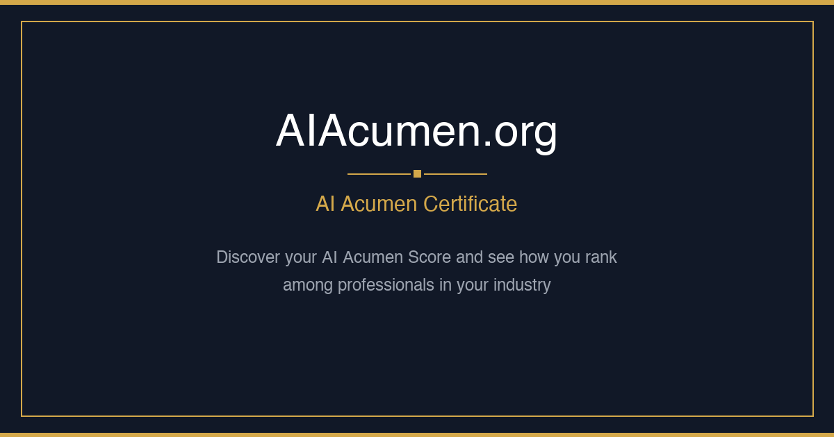 AI Acumen is a free assessment that measures your AI proficiency across four dimensions: core AI literacy, digital tool fluency, cognitive readiness, and growth mindset. You get a personalized score with industry benchmarks.